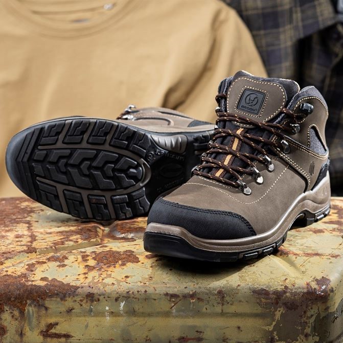 Obuwie oferowane jest w naturalnych odcieniach koloru khaki i beżu, co sprawia, że jest odpowiednie zwłaszcza do prac na wolnej przestrzeni.